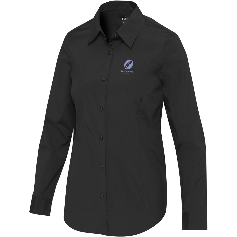 A Carnelian hosszúujjú női poplin ing letisztult stílust és rugalmas, nőies szabást kínál. Prémium, BCI minősítésű, rugalmas pamutból készült, finoman szőtt, 30 denieres, kétrétegű, csavart fonalszerkezete puha, kiváló minőségű kidolgozást és tartós formát biztosít. Normál szabással, elöl és hátul formázó bevarrással tervezték, így előnyös sziluettet és egész napos kényelmet kínál. Időtlen, normál gallérral készült, a Carnelian ing ötvözi az eleganciát és a teljesítményt, így kifinomult, alapvető darab a mindennapi viselethez. 3% elasztánból és 97% BCI pamutból készült puplin, 133 g/m2.