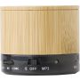 Vezeték nélküli hangszóró hangerőszabályzóval és gombokkal a vissza- és előretekeréshez. Vezeték nélküli mód és MP3 mód. Akkumulátor: 300 mAh. Az akkumulátor élettartama: 2,5 óra. Töltőkábellel. Bambusz.