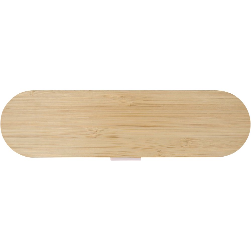 Újrafelhasználható evőeszközkészlet bambusz fedéllel, amely tartalmaz egy villát, kést, kanalat, szívószálat és egy szívószál tisztító kefét - ideális megoldást kínál az útközbeni étkezésekhez. Kompakt kialakításának és egyszerű tisztíthatóságának köszönhetően tökéletes kiegészítő uzsonnás dobozok mellé, utazáshoz vagy irodai használatra.