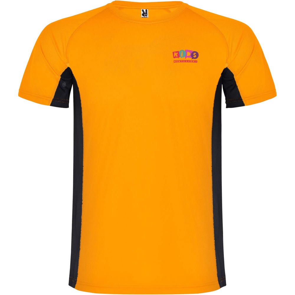 Roly Shanghai rövid ujjú gyerek sportpóló, fluor orange, solid black