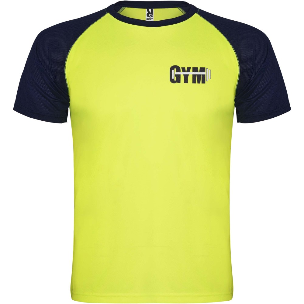 Roly Indianapolis rövid ujjú uniszex sportpóló, fluor yellow, navy blue