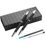 Fém rollerball és golyóstoll extra kék tollbetéttel, díszdobozban.
