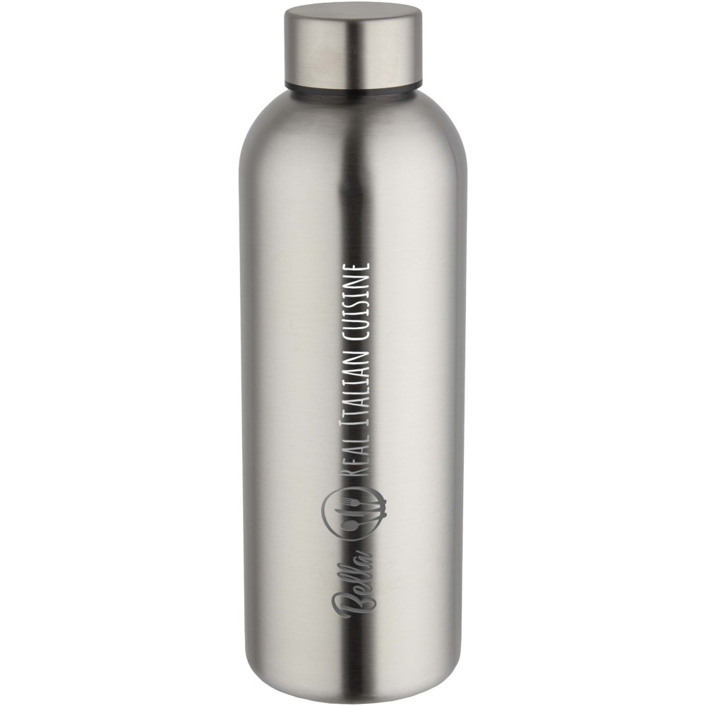 Ez a 750 ml űrtartalmú Spring vizespalack RCS tanúsítvánnyal rendelkező, újrahasznosított rozsdamentes acélból készült. A termék biztonságos, csavaros kupakkal rendelkezik, külső felületét pedig matt porszórt bevonat borítja, amely modern megjelenést és kényelmes fogást biztosít. Könnyű, mégis tartós kialakítása miatt ideális választás a mindennapi hidratáláshoz.
